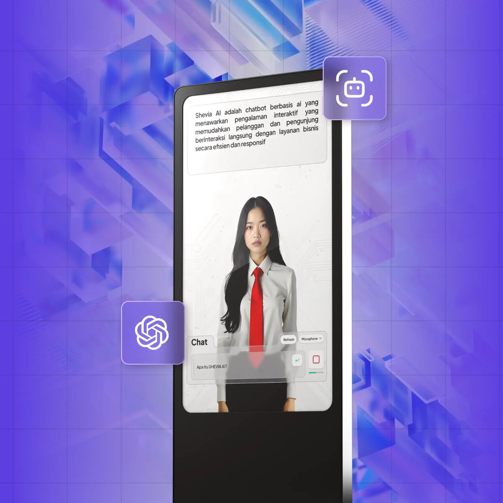 Penerapan machine learning untuk prediksi tren bisnis, chatbot otomatisasi layanan pelanggan, dan analisis data.