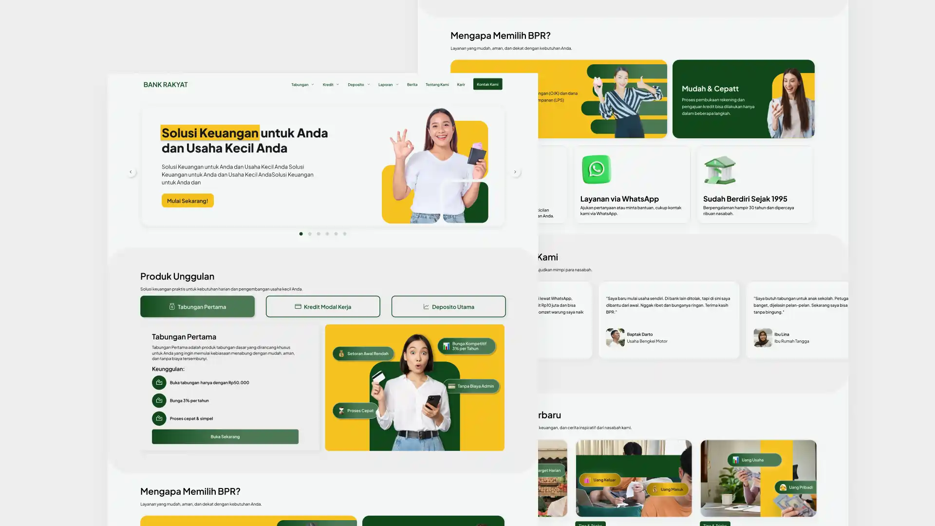 Fokus utama pengembangan adalah membangun kredibilitas lembaga melalui desain profesional dan tata letak informasi yang terstruktur. Sistem ini memudahkan nasabah untuk memahami produk simpanan maupun pinjaman, serta melakukan simulasi perhitungan finansial secara mandiri tanpa harus mengunjungi kantor fisik.