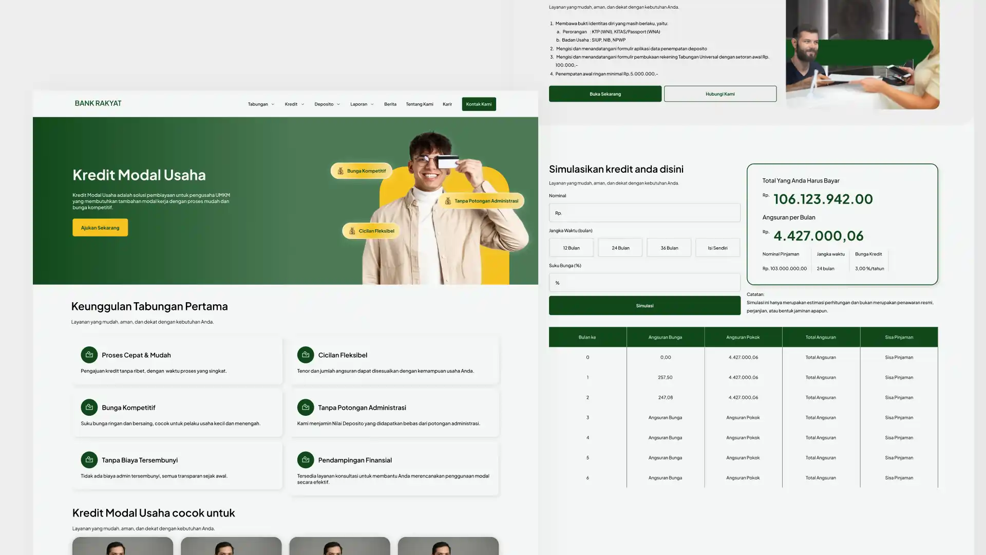 Fitur interaktif yang memungkinkan calon debitur menghitung estimasi angsuran bulanan secara real-time.